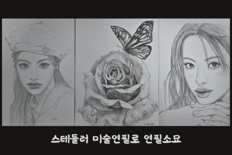 스테들러 미술연필 세트로 연필소묘 3점