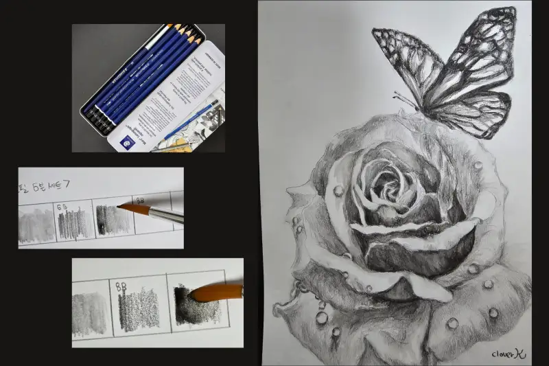 2. 스테들러 마스루모그라프 수채연필 6본조: 장미와 나비 그리기