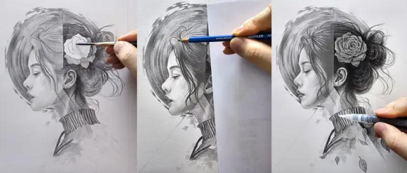 다양한 스타일의 연필들을 활용하여 스케치부터 명암 표현까지,