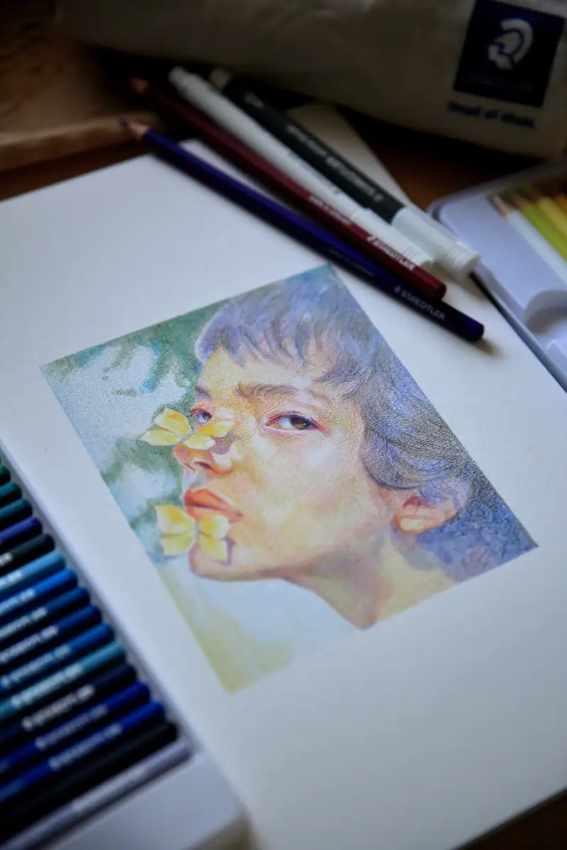 저는 평소에 수채화를 주로 그리는데, 색연필로만 이렇게 완성한 그림은 이번이 거의 처음이에요.