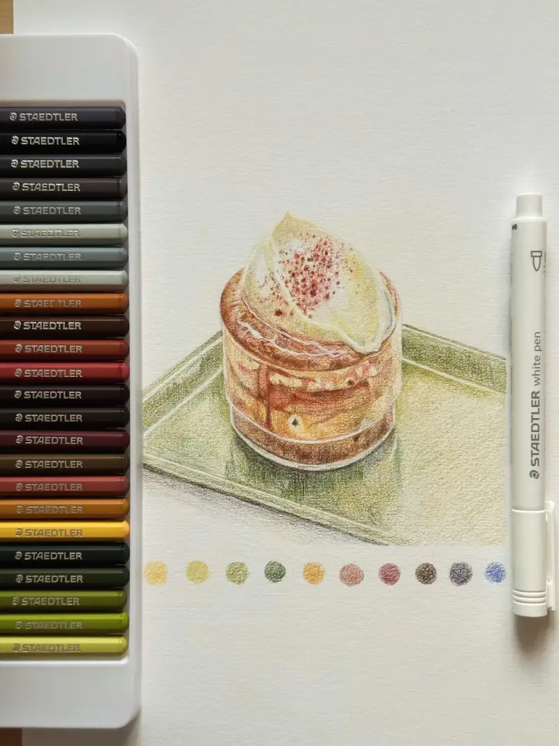 스테들러 소프트 색연필은 무채색 구성도 다양해서 크림층의 미세한 뉘앙스를 표현하기 좋았고,