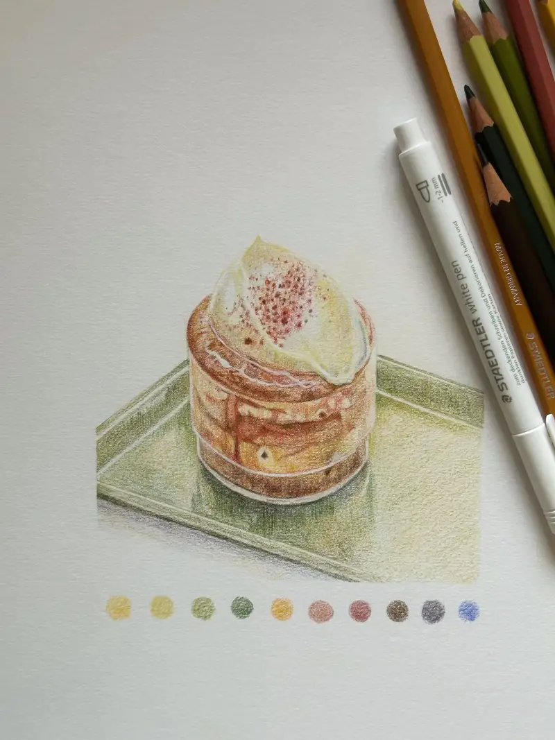 무얼 그릴까 고민될 때, 이렇게 내가 좋아하는 커피나 디저트를 색연필로 가볍게 그려보는 것도 추천하고 싶어요.