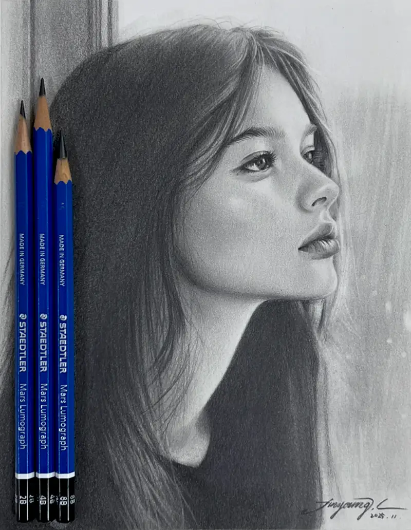 이번 인물화는 스테들러 마스 루모그라프연필 2B, 4B, 8B를 사용했어요