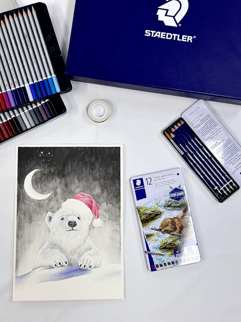 스테들러 수채색연필 세트로 미리 크리스마스 북극곰♥