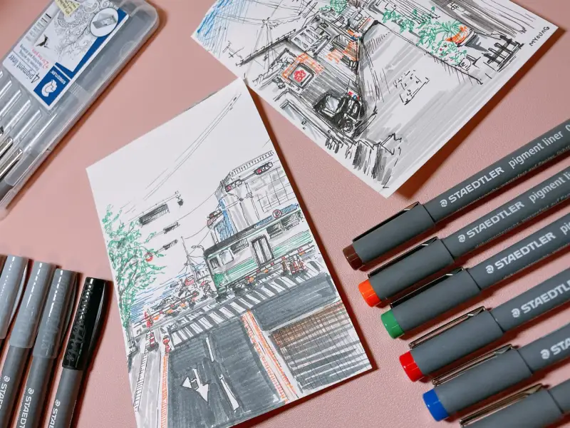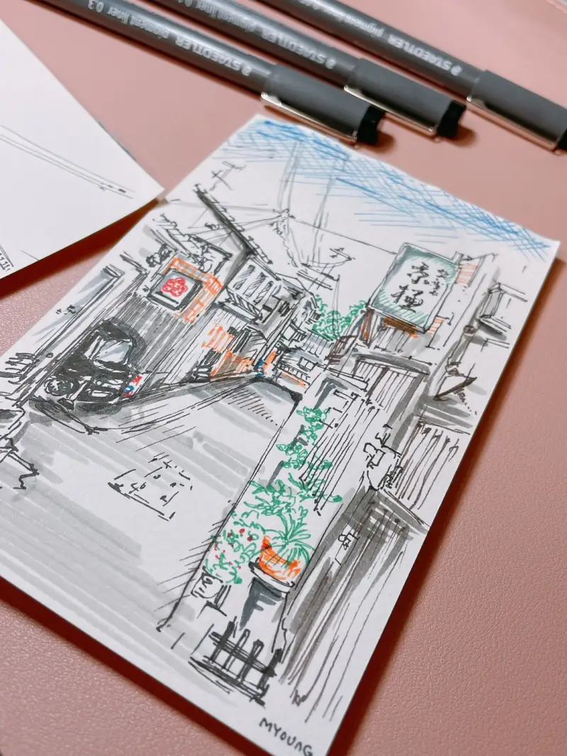 #스테들러아트펜세트 속의 피그먼트라이너를 활용하여 여행하며 찍었떤 풍경 사진을 그려보았어요😄