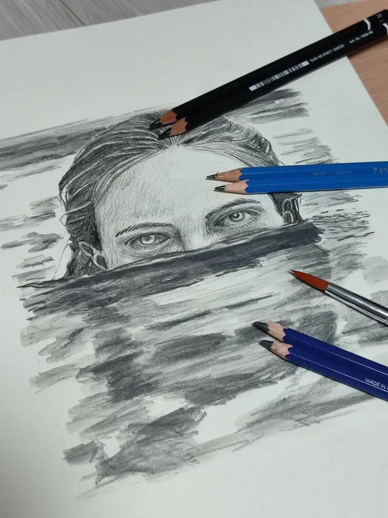 ▶ 물에 비친 부분은 마스 루모그라피 수채연필 4B, 6B를