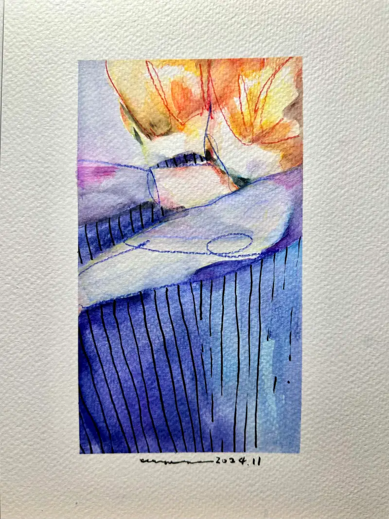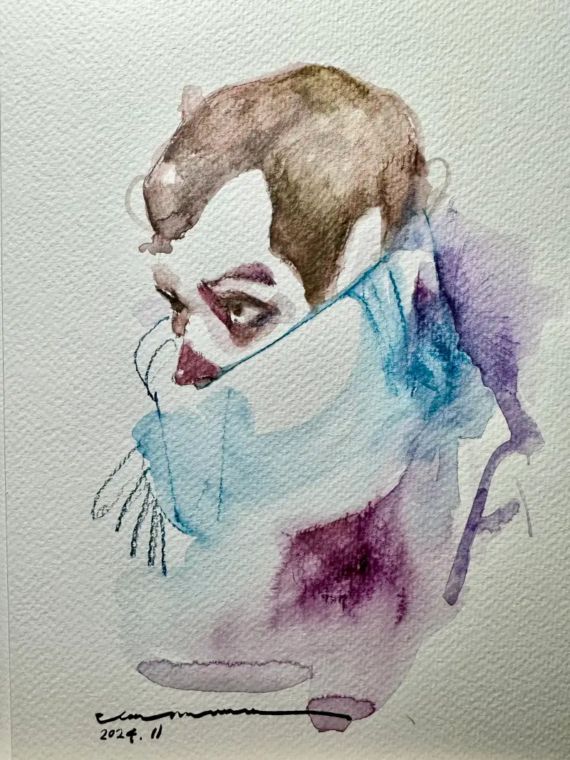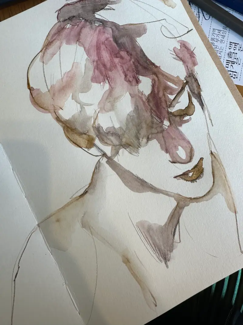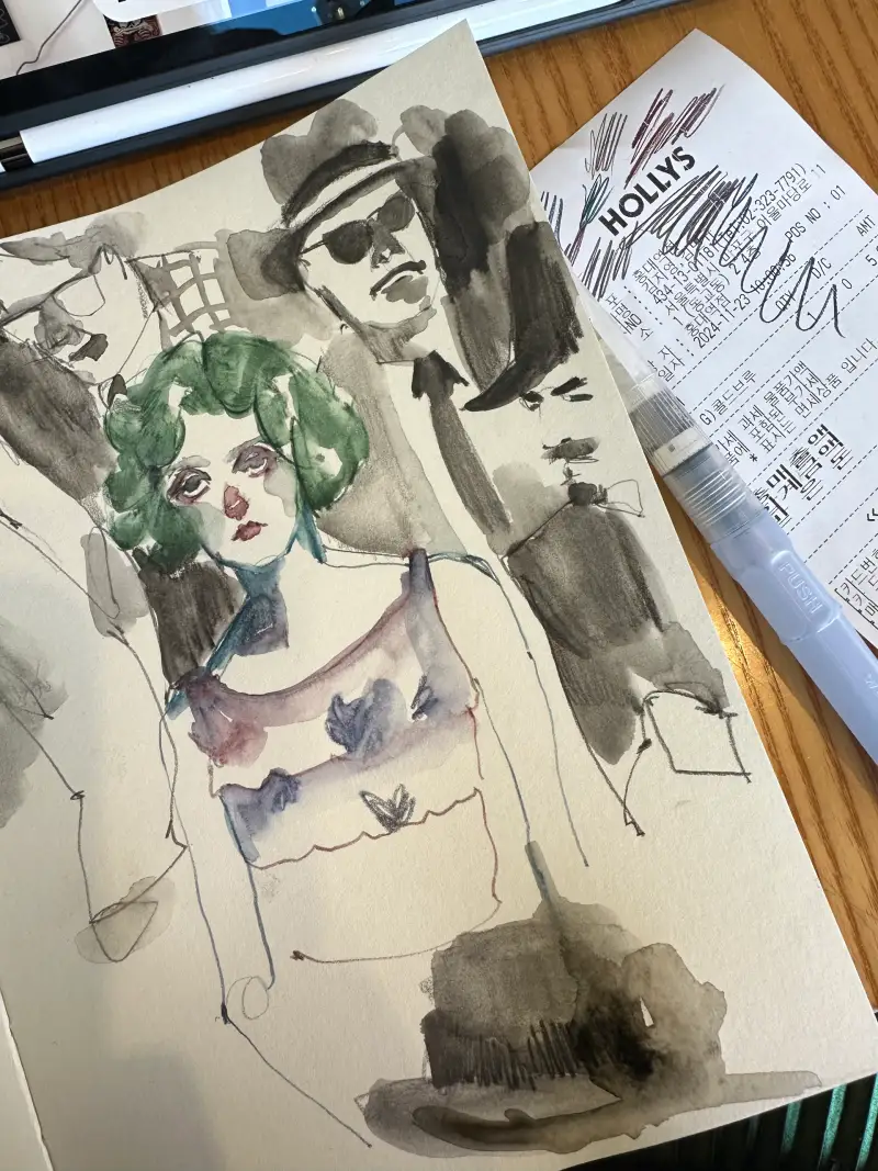 건식과 습식 두 특성을 모두 구현할 수 있어 크로키같은 빠르고 거친 선이 위주인 그림을 그리는 저에게는 선과 색, 모두 다 표현할 수 있는 아주 편리하고 유용한 재료였습니다.