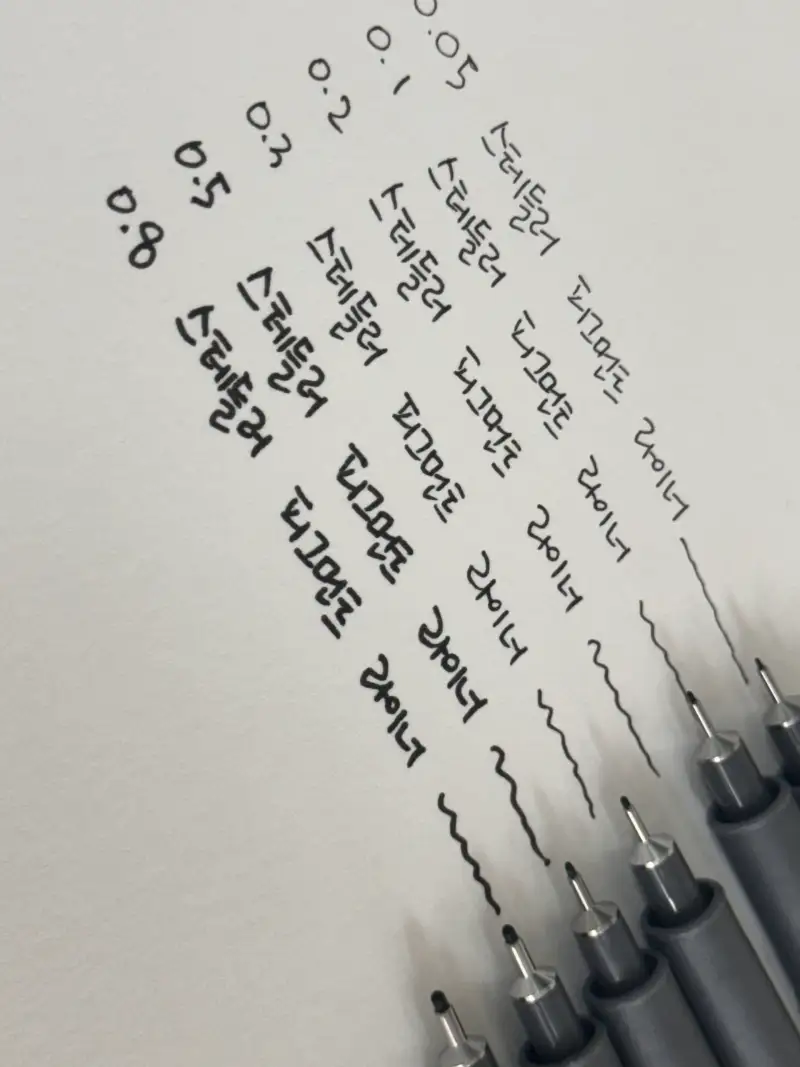 사용해보면서 진~하고 어둡긴하다 싶었는데, 아니나 다를까 기존 스테들러 피그먼트 펜보다 더 짙은 인텐스 블랙 잉크를 사용했다고 해요 ~ 정말 진득하게 어두운 블랙!
