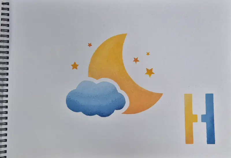 스텐실 붓을 이용한 구름과 달과 별