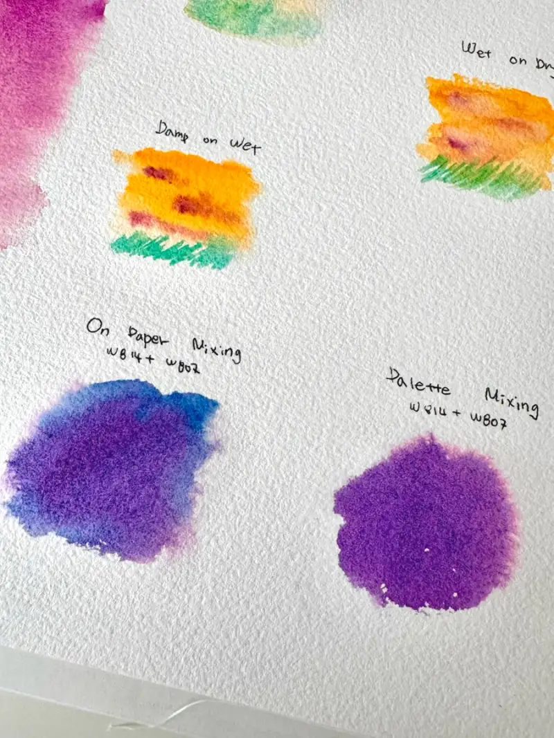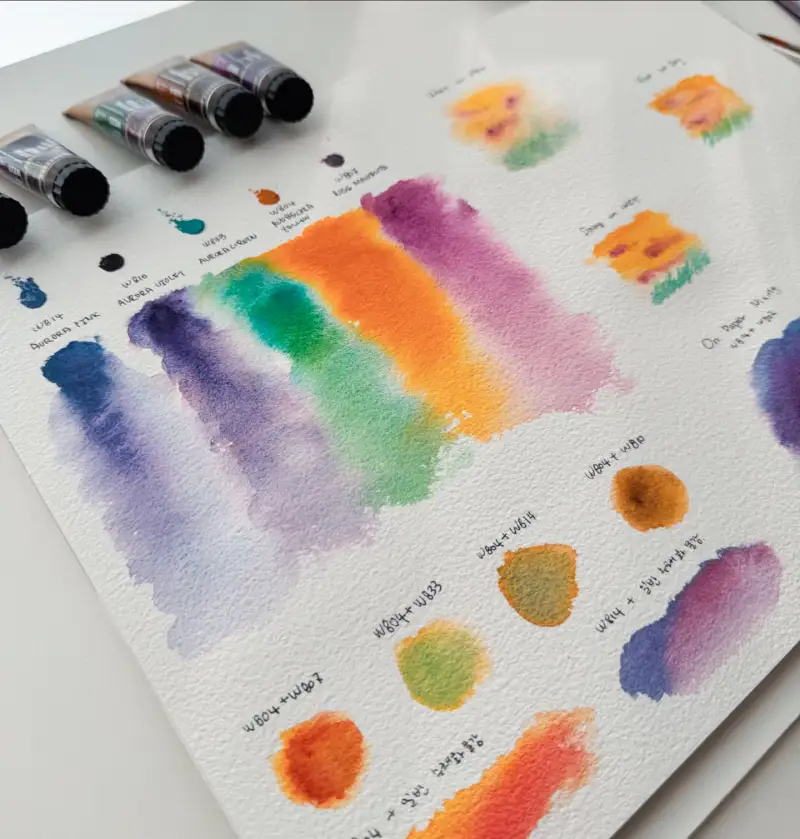혼색하면 투톤과 그래뉼레이션효과가 유지될까? 라고 생각하며 투톤 물감끼리도 혼색해보고 일반 수채화물감과도 혼색해보았어요.