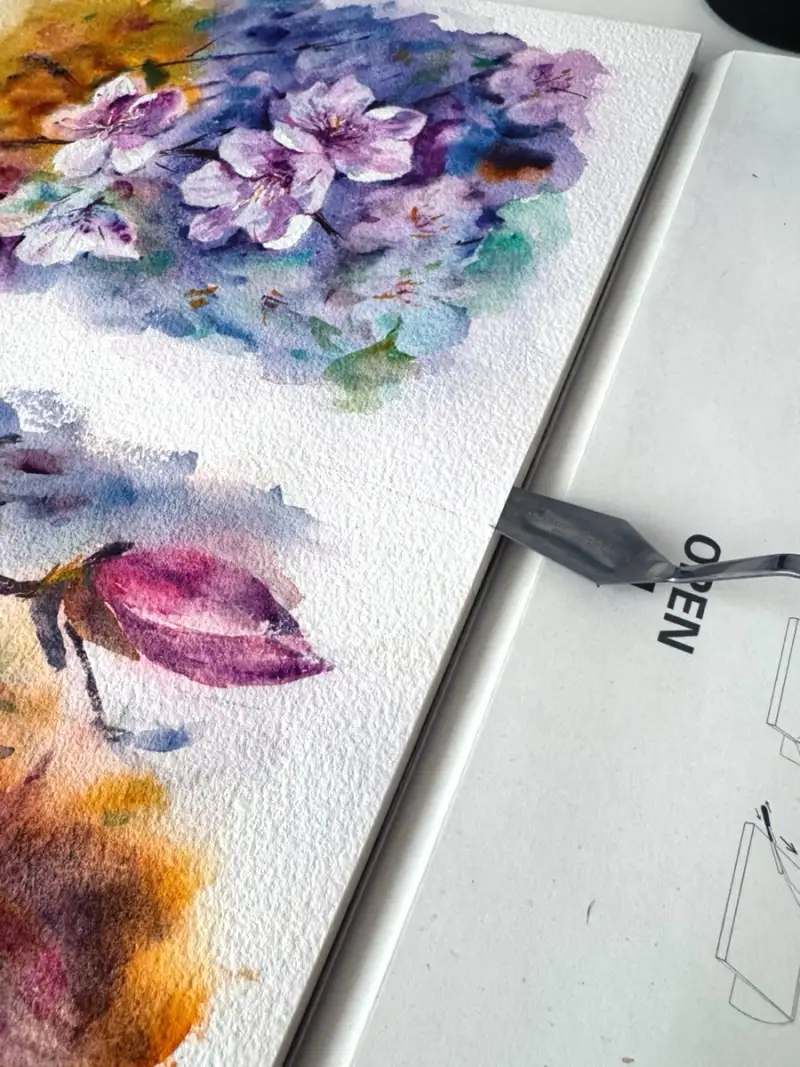 4면제본 스케치북 나이프 넣는 홈이 없어서 떼어낼때 힘든경우가 있는데 미젤로 리얼코튼은 나이프 홈이 있어서 떼어내기 정말 수월했어요👍🏻