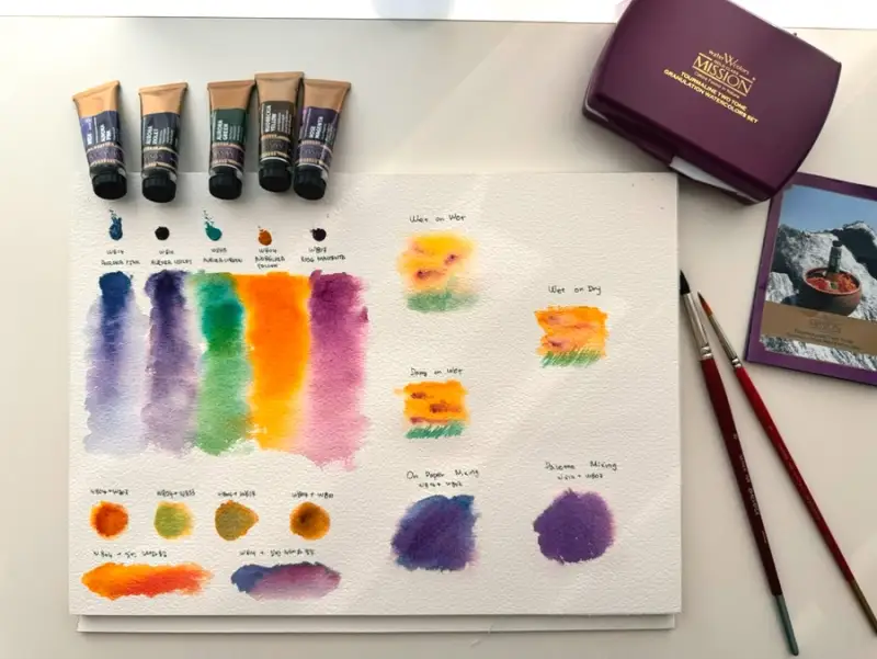 ✅일반 수채화 물감과 혼색했을때