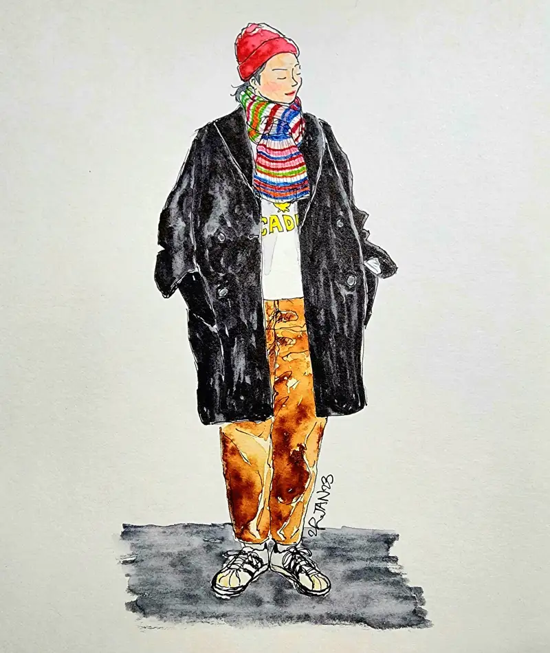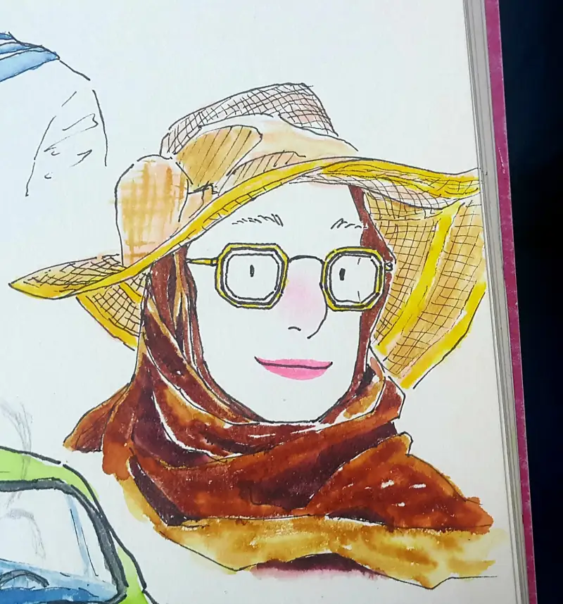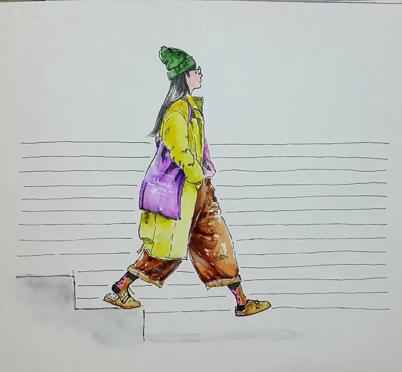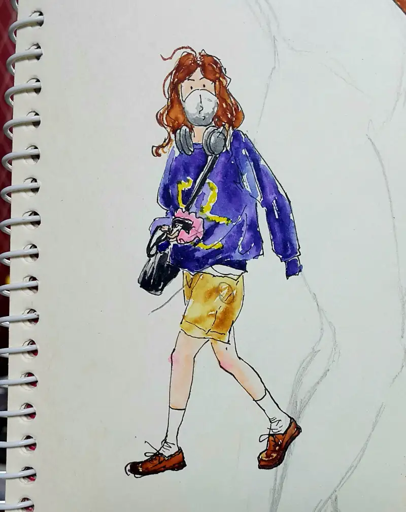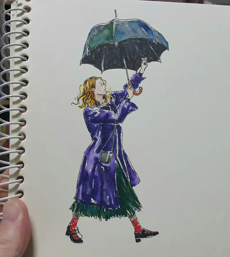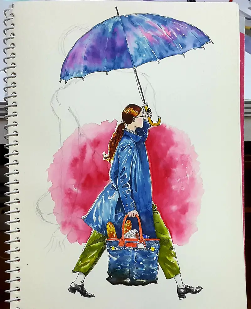 발색이 엄청 쨍-하기 때문에 일반수채화(?)와는 다른 독특한 매력이 있다고 생각해요. (종이가 아까워 예전 크로키 위에 덧그림 & 역시 바로 펜터치 이슈로 우산 아니라 파라솔 됨;;)