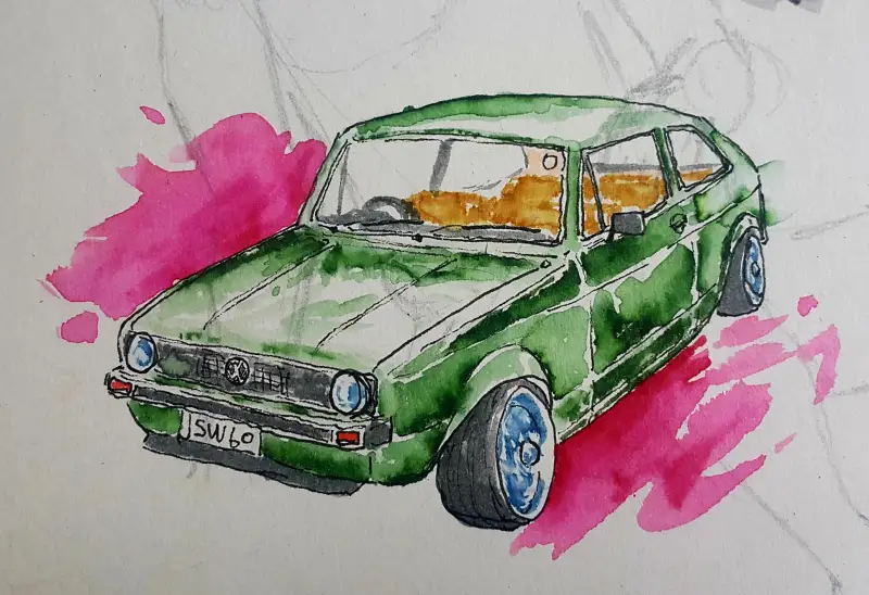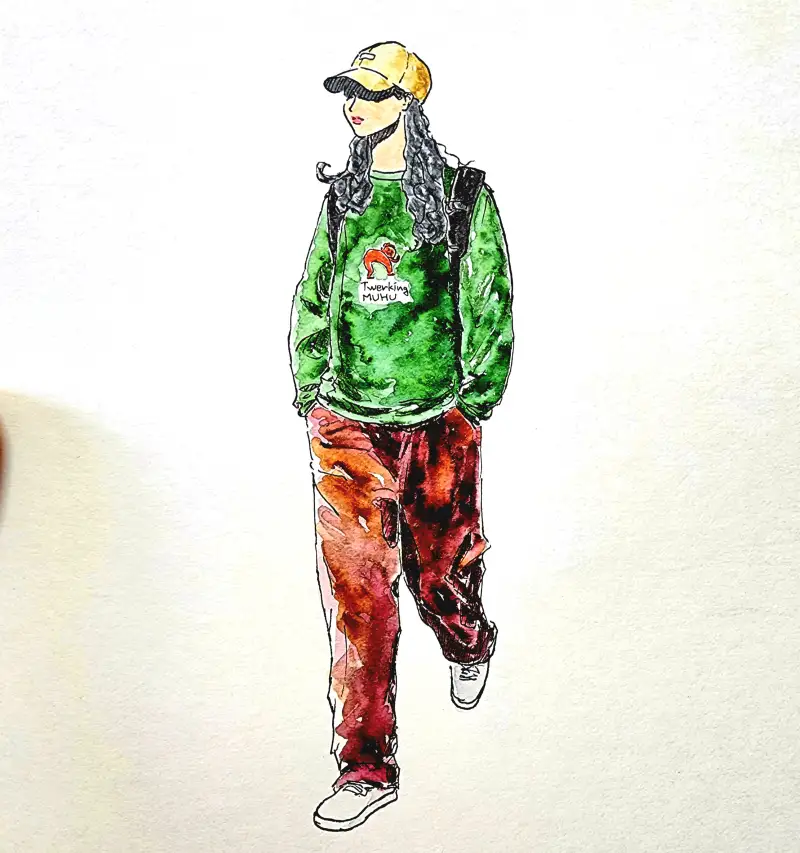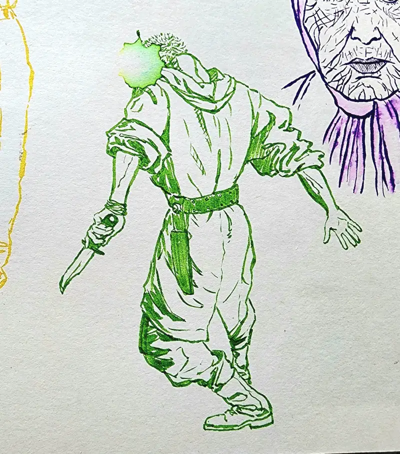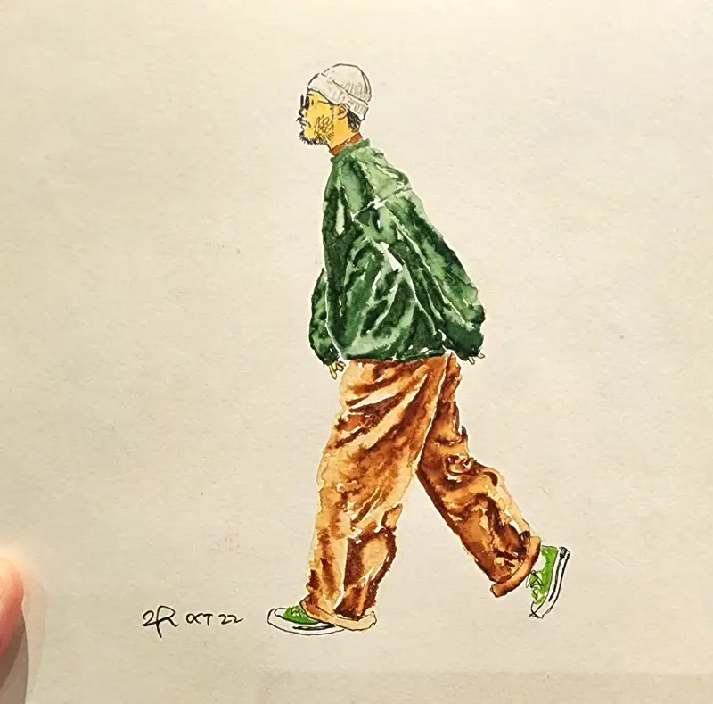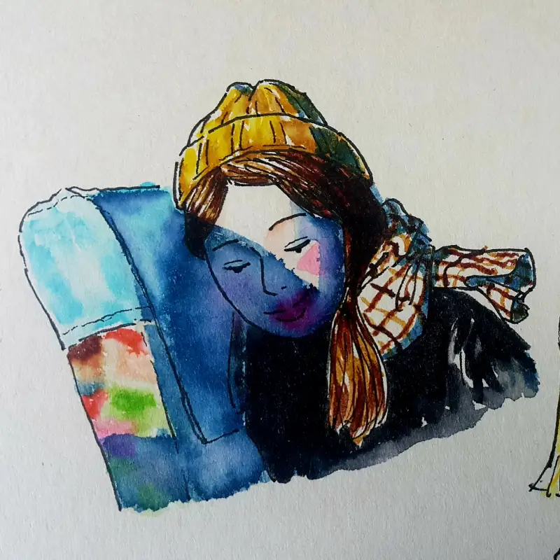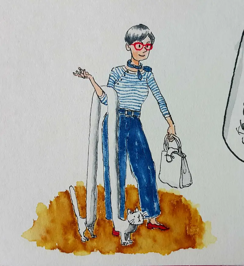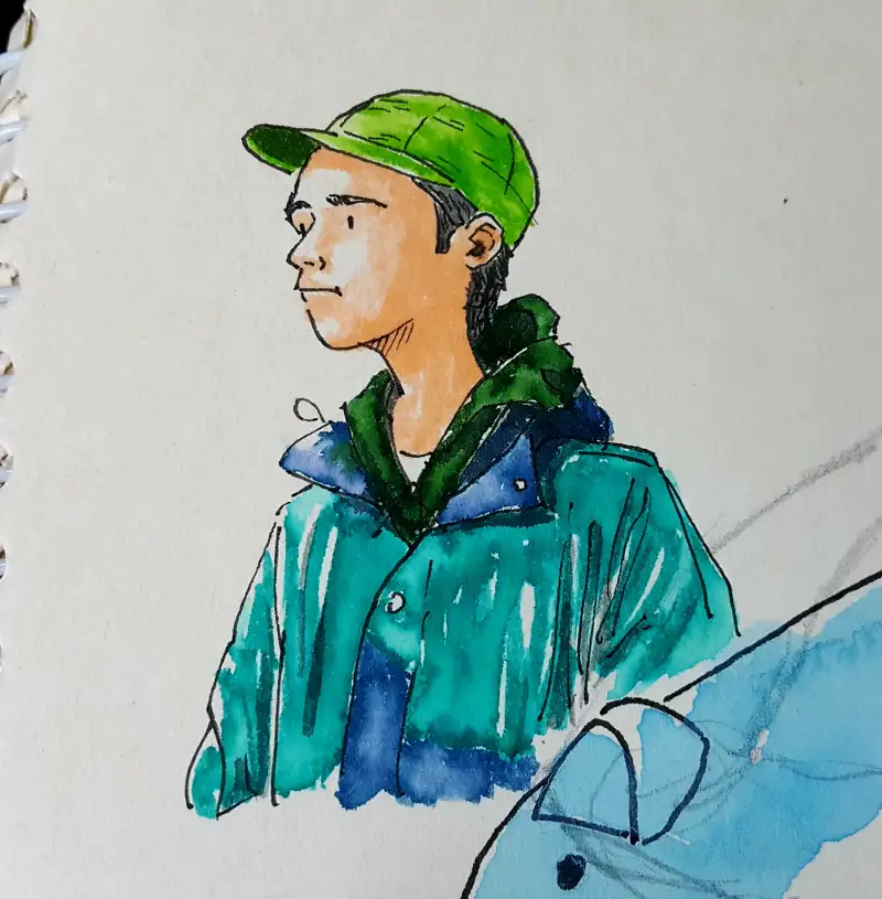 발색이 엄청 쨍-하기 때문에 일반수채화(?)와는 다른 독특한 매력이 있다고 생각해요. (종이가 아까워 예전 크로키 위에 덧그림 & 역시 바로 펜터치 이슈로 우산 아니라 파라솔 됨;;)
