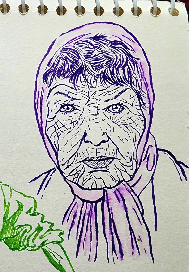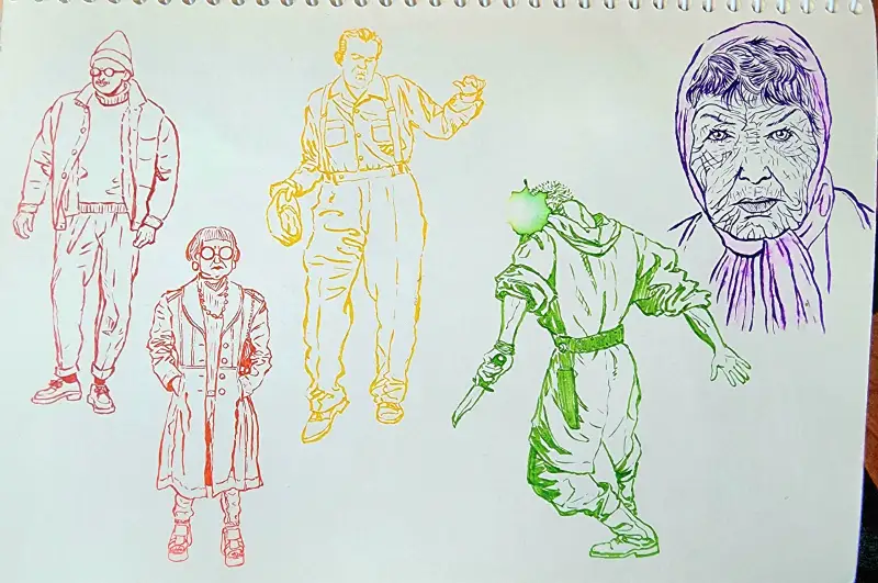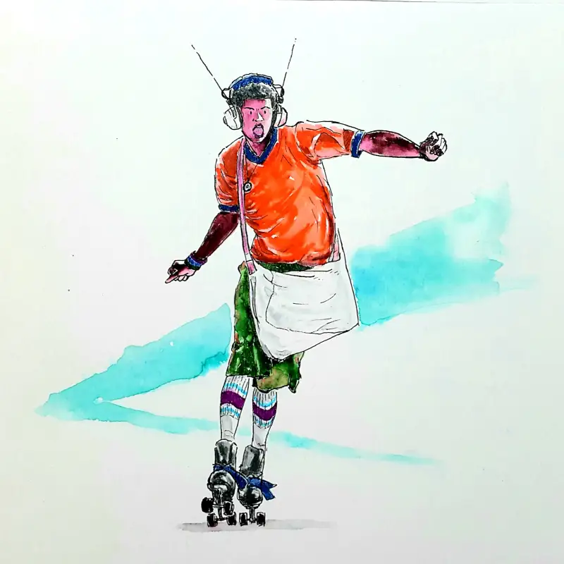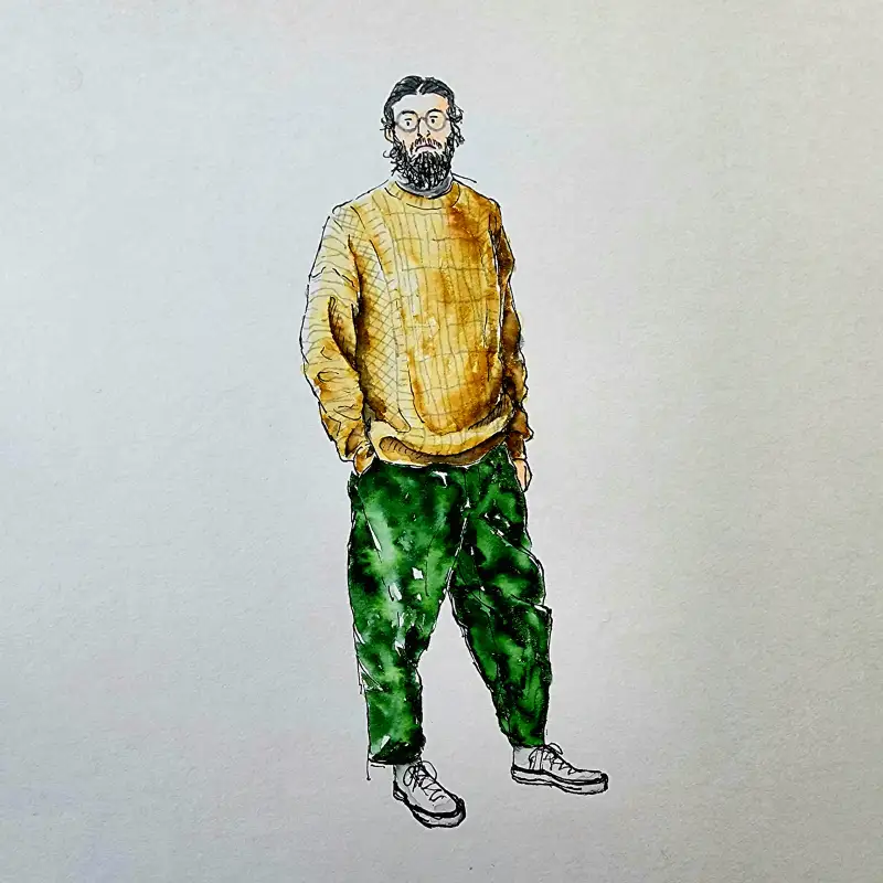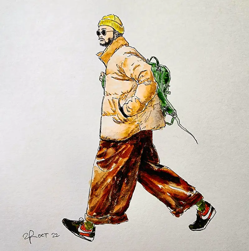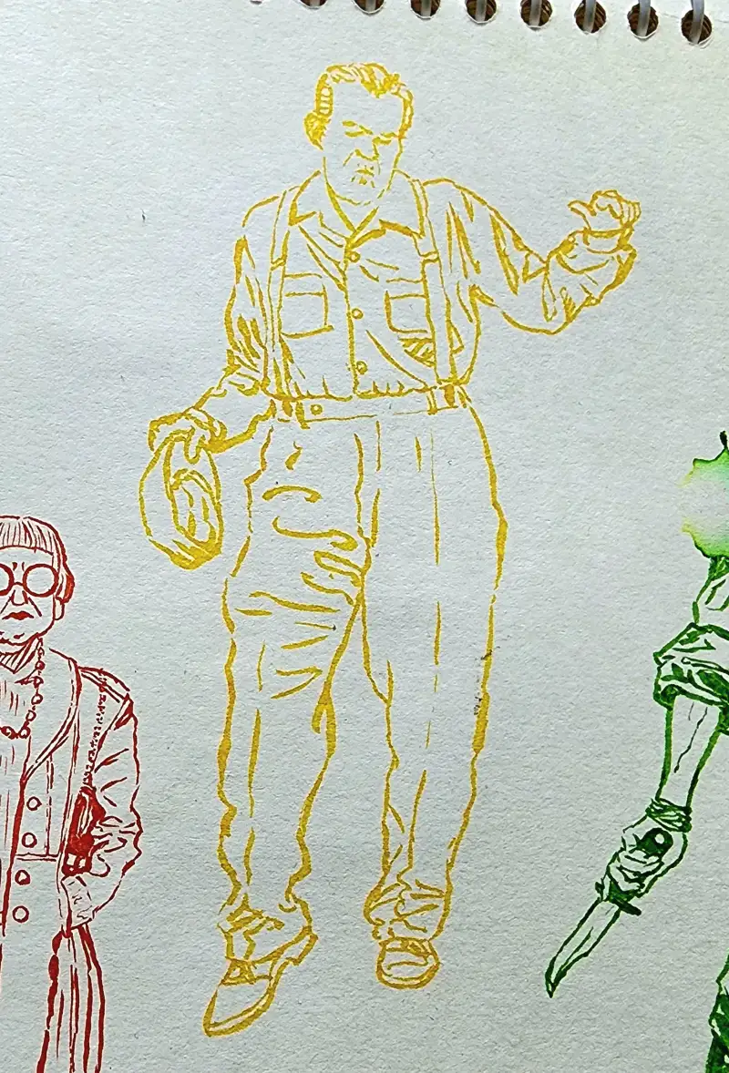 발색이 엄청 쨍-하기 때문에 일반수채화(?)와는 다른 독특한 매력이 있다고 생각해요. (종이가 아까워 예전 크로키 위에 덧그림 & 역시 바로 펜터치 이슈로 우산 아니라 파라솔 됨;;)
