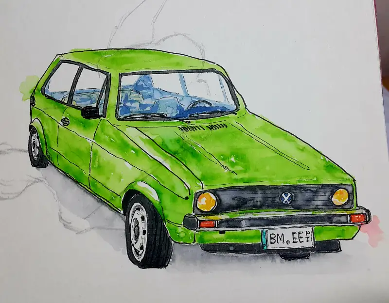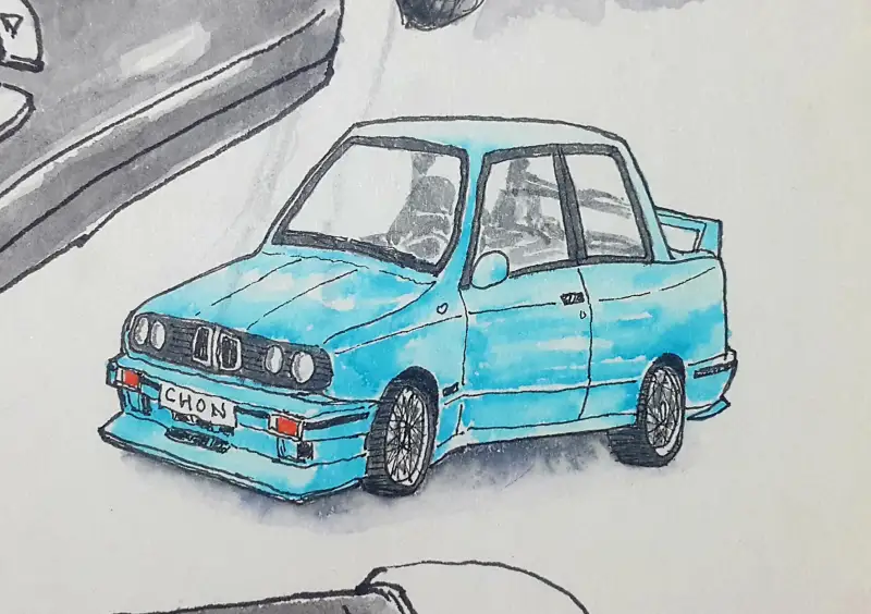 지인이 선물해줘서 붓펜이란 것의 존재를 처음 알게 됐을 때, 한창 수채화에 대해 탐구하던 때라 수채화로 쓸 생각밖에 못 했었습니다. (연필 스케치 없이 바로 펜터치 하는 연습 중이라 우산 찌그러짐;;)