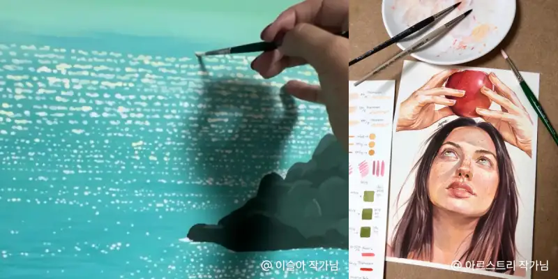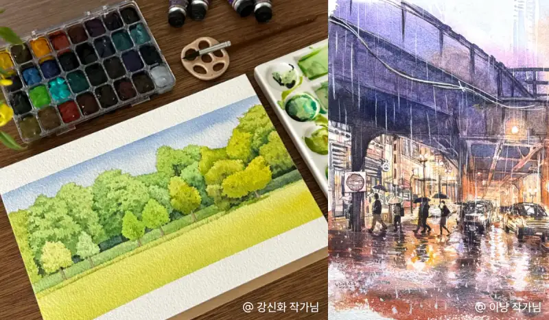 일반 수채화물감이랑 섞어서 사용하면 과슈 느낌도 낼 수 있어요!