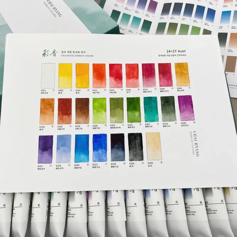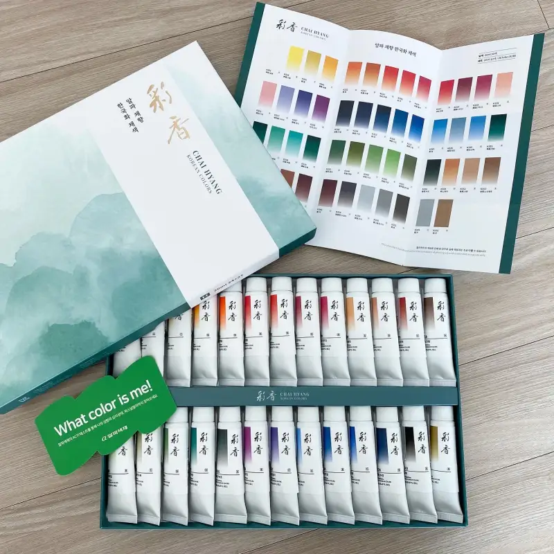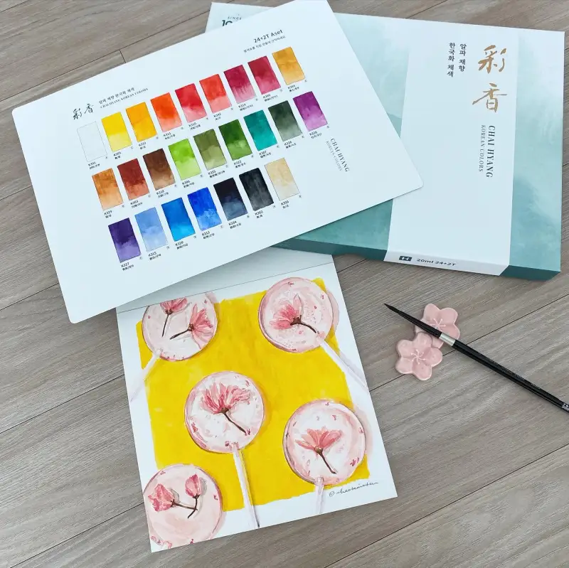이번 기회로 알파 뉴 채향 한국화 채색 물감은 사용해볼 수 있습니다. 사실 동양화 물감은 사용해본적 없어서 혹시나 저의 일러스트레이션에 맞는가 좀 걱정 되었어요. 그런데 발색표를 만들어다가 색깔이 너무 밝고 선명하네요. 이럴 때는 아무 그림이나 아무 스타일을 사용해도 괜찮을 것 같아요.
