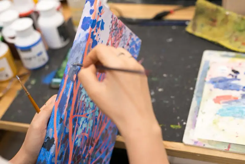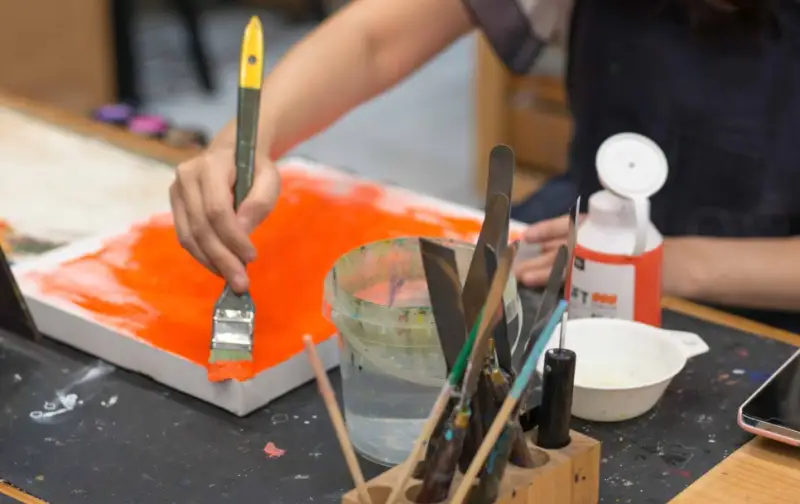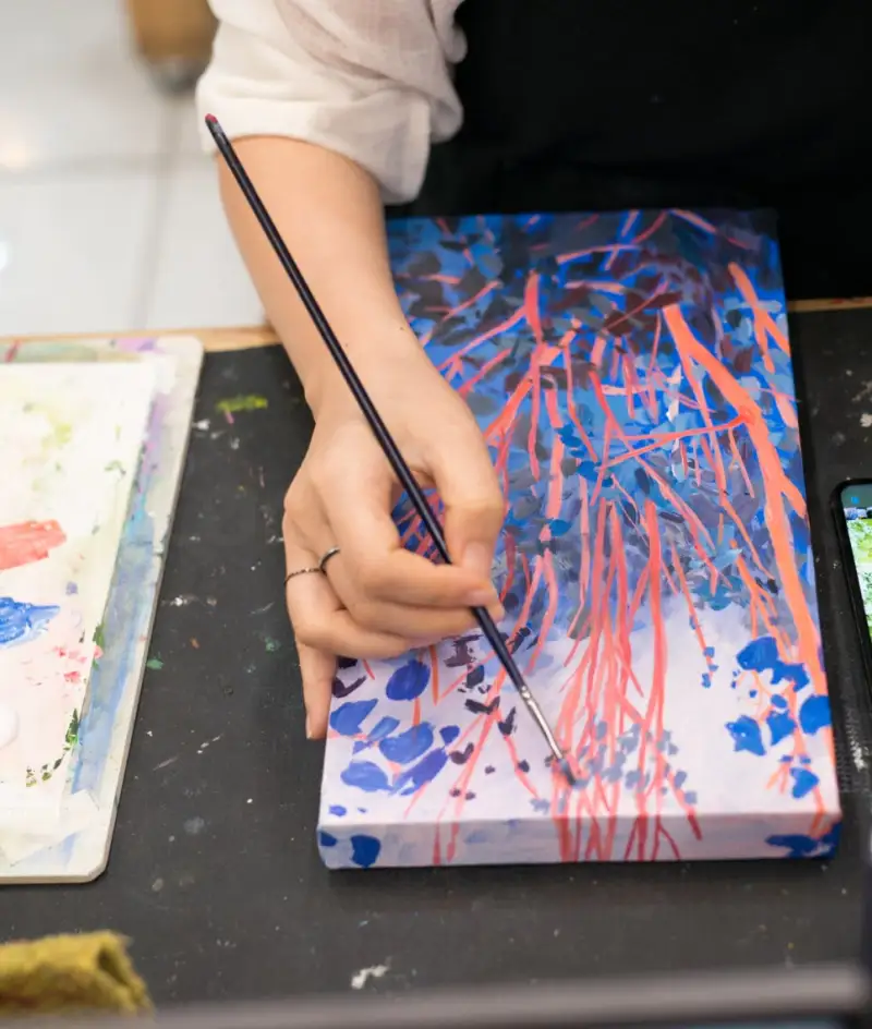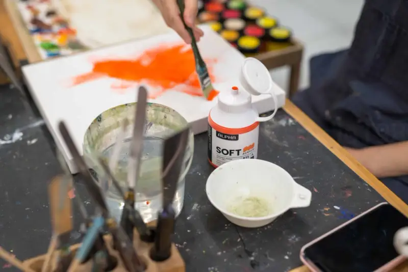 아크릴 물감은 건조 전에는 물에 잘 녹지만 마르면 물에 녹지 않는 신기한 재료라고 말해주셨던 기억이 납니다.