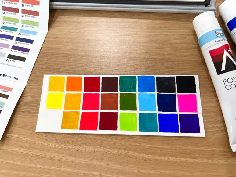 알파 에이플러스 포스터칼라 A세트 발색표입니다.