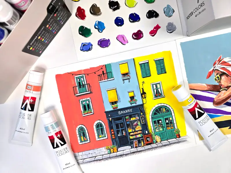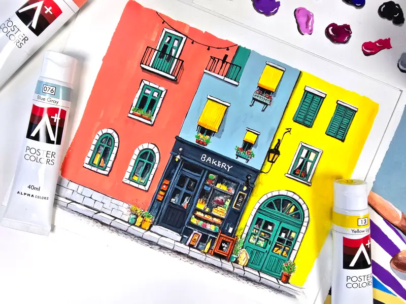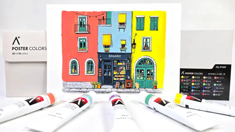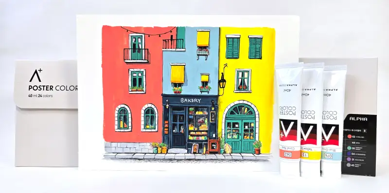 알파 에이플러스 포스터칼라로 베이커리 상점거리 그리기