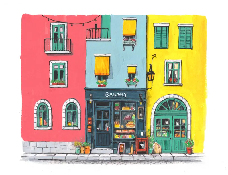 🏨 베이커리 상점과 거리 풍경 그리기 🏨