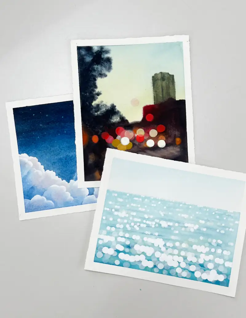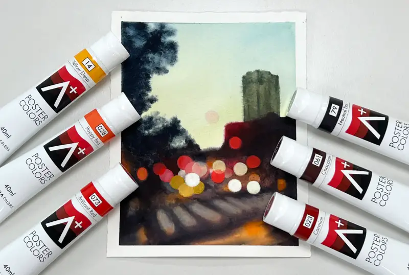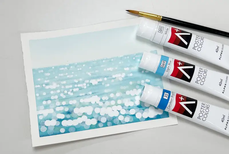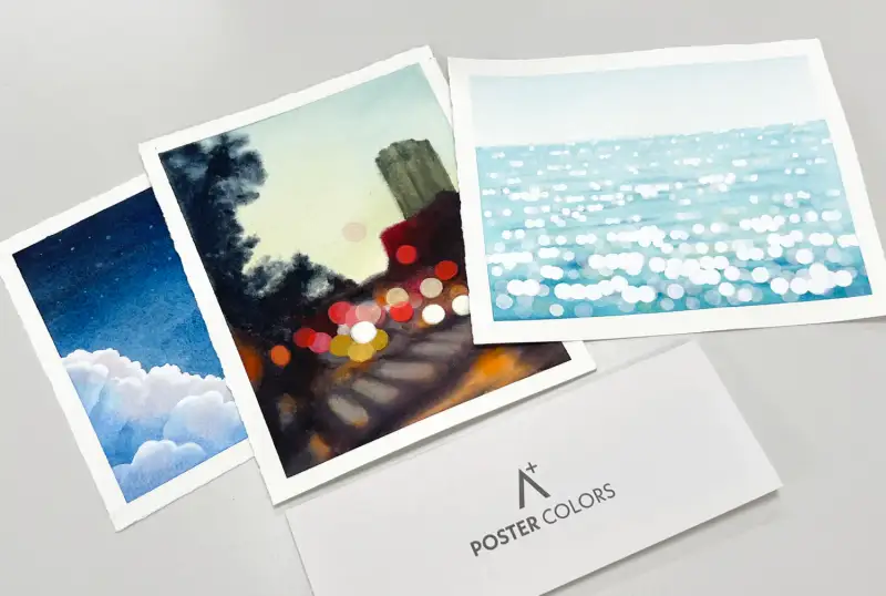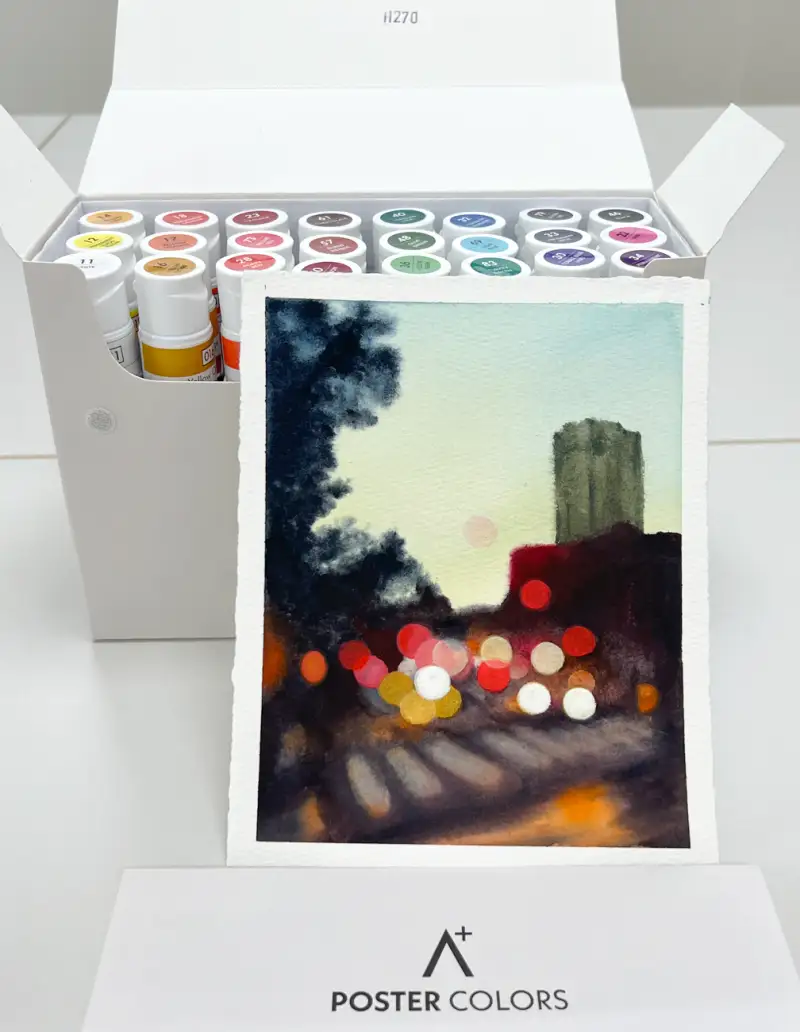 발색과 테스트를 해보면서 알파 에이플러스 포스터칼라로는 윤슬이나 야경의 불빛을 그리면 딱이겠다 싶었어요