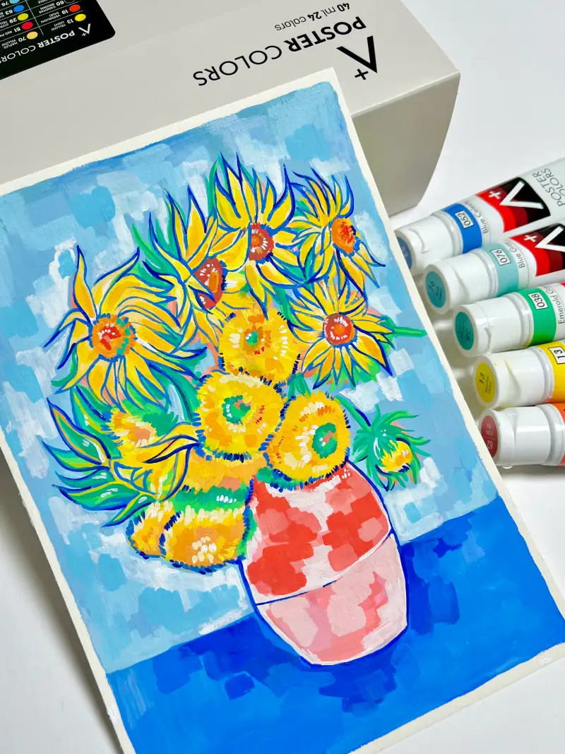 알파 에이플러스 포스터 칼라 B세트로 반고흐의 해바라기를 그려보았습니다.
