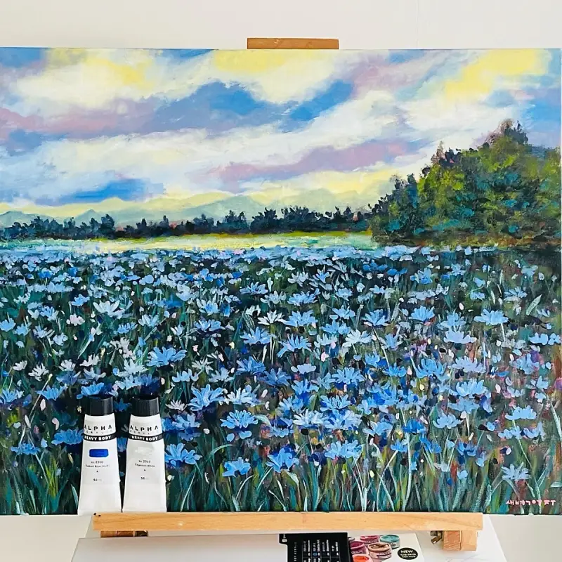 물감이 되직해서 페인팅 나이프로 도톰하게 올릴 수 있고