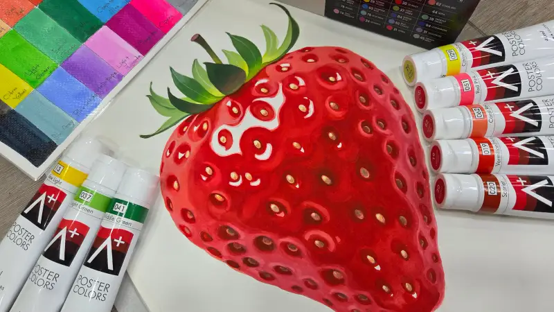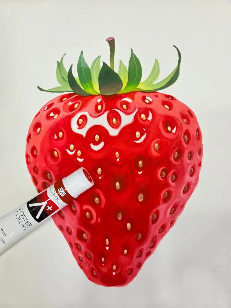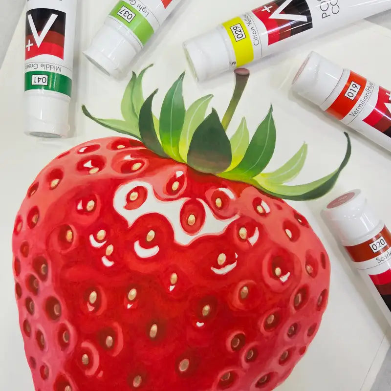📌고품질 안료 사용으로 색의 투명도와 불투명도 표현이 모두 뛰어납니다.- 딸기의 무게감과 딸기꼭지잎의 맑음까지 한 작품 안에서 다양한 질감을 보여주기 좋습니다.