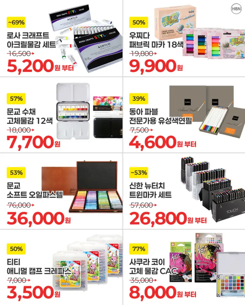 그래서 준비했습니다. 미술 재료 전단 특가!