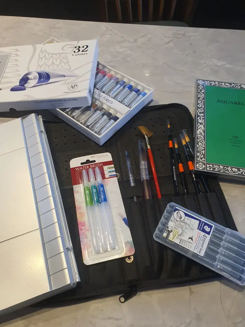 수채화를 즐겨했는데 어반스케치가 요즘 인기가 있어 아예 어반스케치용으로 구매를 했습니다. 고체물감을 살까하다가 손에 익은 튜브물감을 구입한건 아직까지 결정에 대한 오락가락 ㅋㅋㅋ