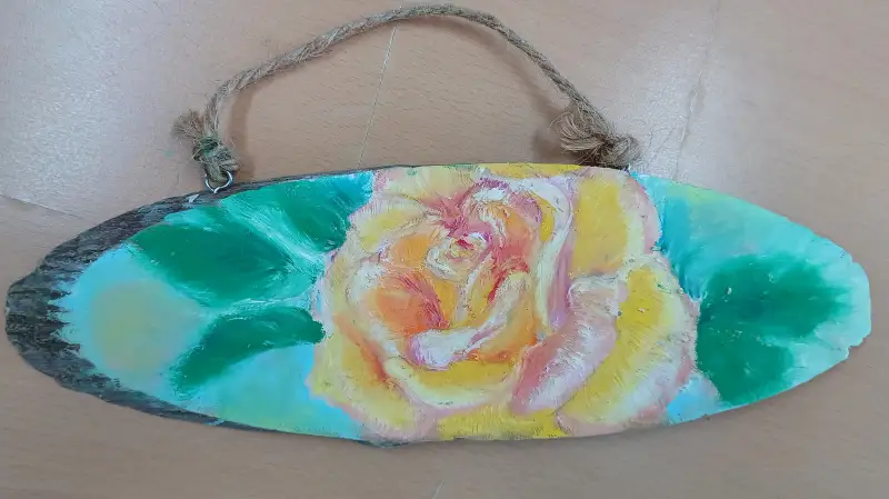 나무판자 위 오일파스텔로 장미를 그렸다