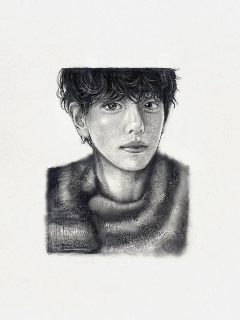 스케치북에 톰보우3H 연필로 밑그림을 그리고 톰보우HB와 톰보우 2B로 적절한 그림자를 넣어준 뒤 파버카스텔14B로 진하게 머리카락을 칠했습니다. 전동지우개와 지우개로 하이라이트를 표현해주었습니다.