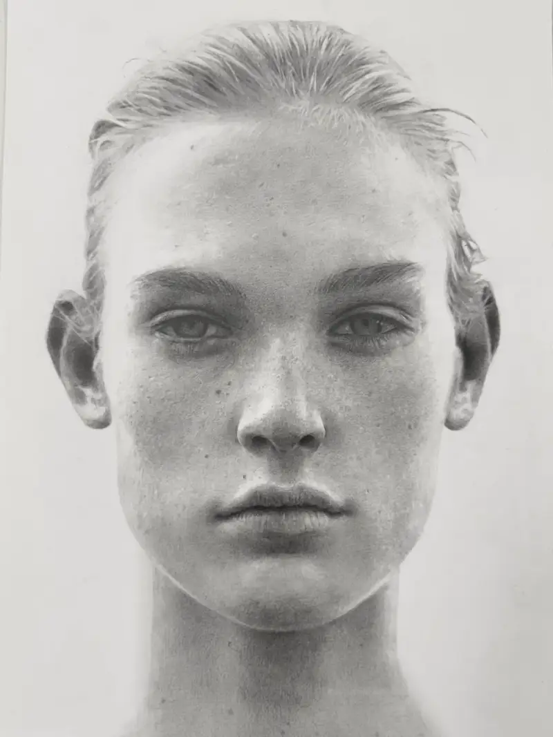 연필로 인물화를 작업하실때 팁은 .. 선연습을 충분히 하시는게 좋다는 건데요, 일반적으로 정물,풍경을 할때 쓰는 넓은 톤으로는 포근하고 사실적인 질감 표현이 조금 힘들어서 얇고 촘촘한 선으로 밀도를 쌓아 올라가야만 표현되는 부분들이 있어요.