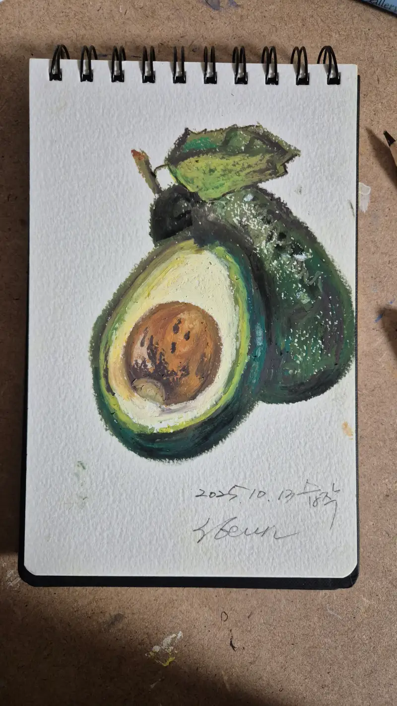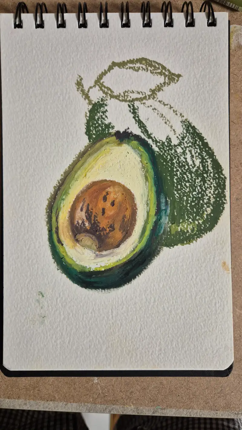 요즘 아보카도를 많이 그리더라고요. 초보자 분들이 그리기도 쉽고. 저도 초보자지만. 사실 오일파스텔로 작업하는 건 자신이 없습니다. 사용할수록 뭉특해지고 제가 원하는 방향으로 선을 긋거나 색을 칠하려면 내 손이 내 손이 아닌 느낌?! 오랜만에 정물을 그리니까 새로웠습니다.