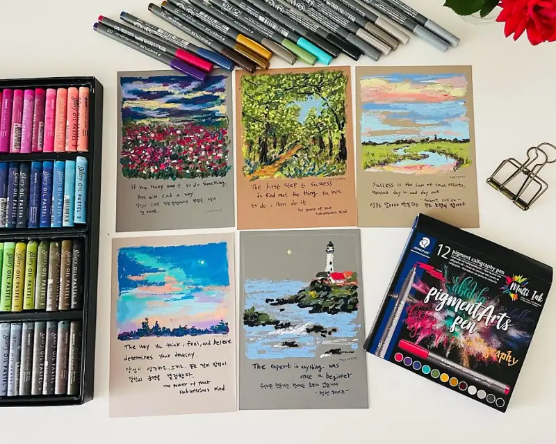 오일파스텔 그림과 손글씨의 조합(스테들러 캘리그라피펜)