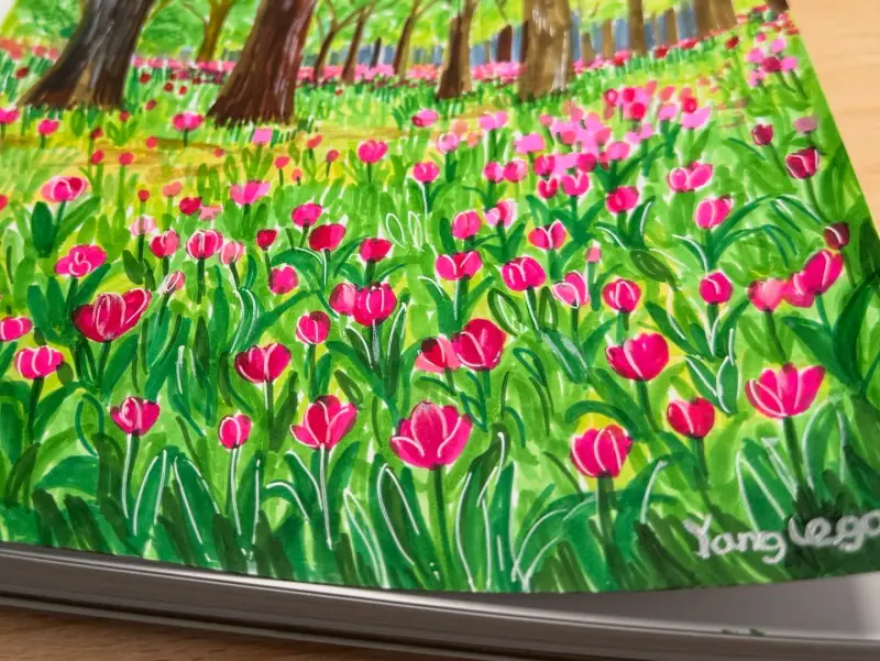 “초록 숲길 사이로 피어난 튤립들 🌸