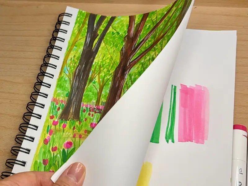 ✨블렌딩 되는 부분도 자연스럽고 특히 패드는 뒷면에 묻어나지 않아 너무 신기하고 놀라웠어요🤭 원래라면 스케치북에 종이가 많이 울고 그리면 뒷면은 번져있고 사용할 수 없었는데 뒷면에 바로 그려도 상관없겠다는 생각이 드네요.