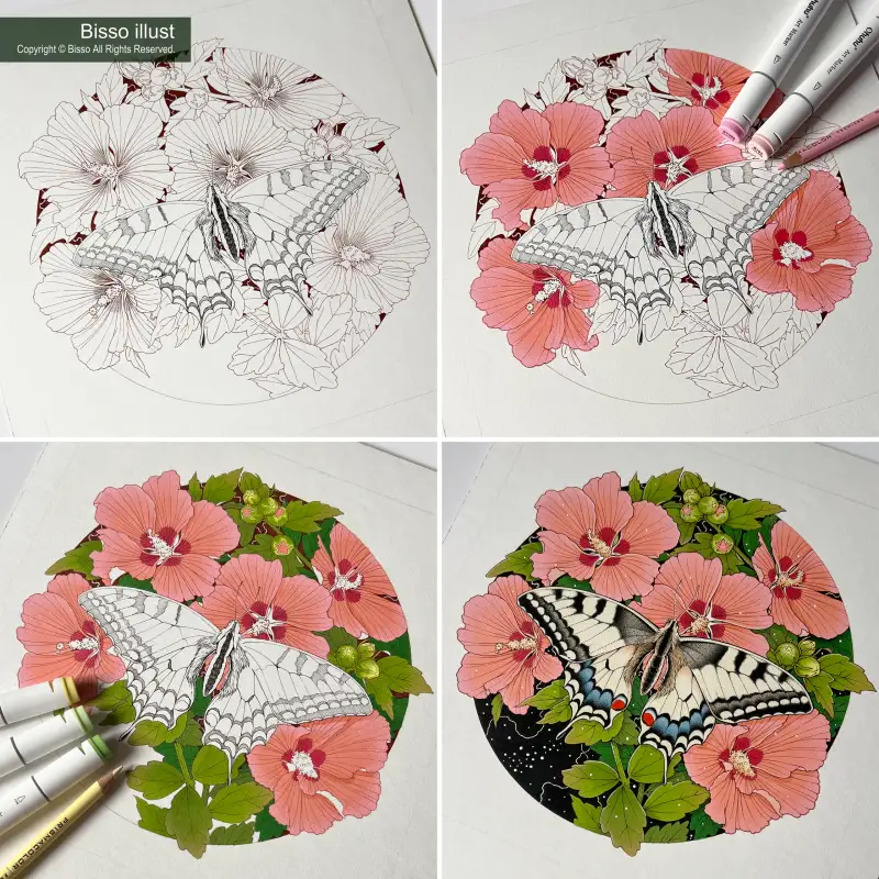 마카뿐만 아니라 색연필로 작업하기에도