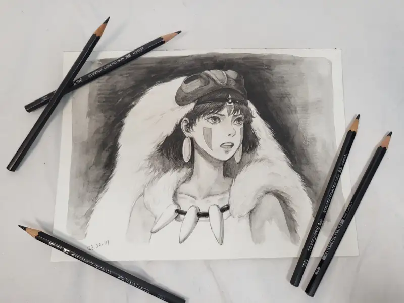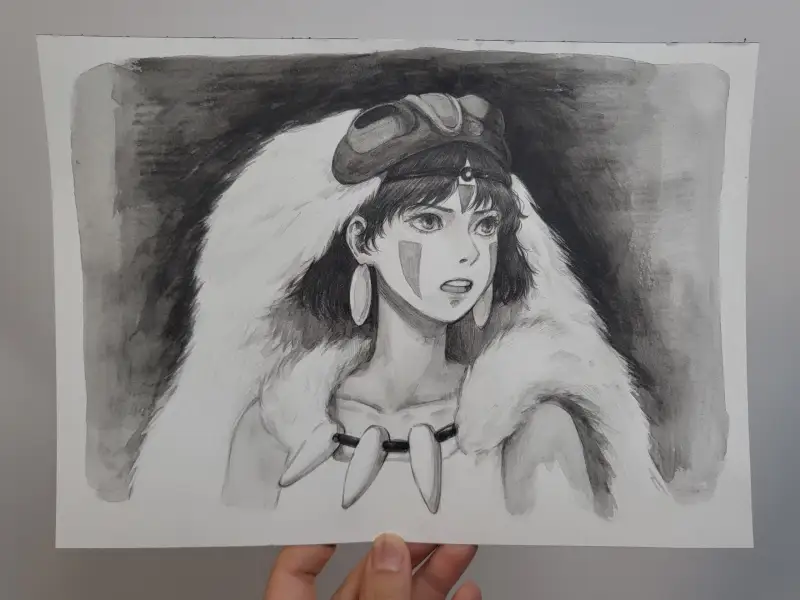지브리 원령공주의 주인공,,, 산을 그렸는데요