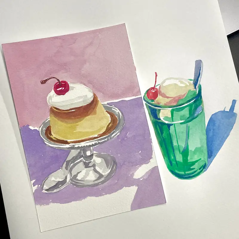윈저앤뉴튼 고체물감으로 그린 디저트! (+수채화붓 추천 - 화방넷 커뮤니티