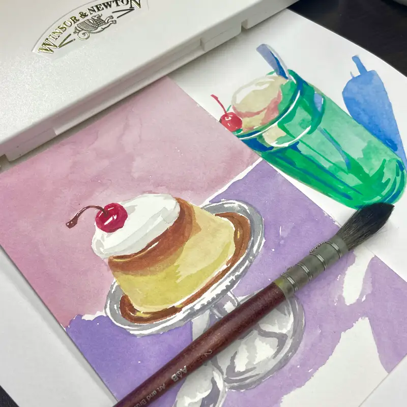 윈저앤뉴튼 고체물감으로 그린 디저트! (+수채화붓 추천