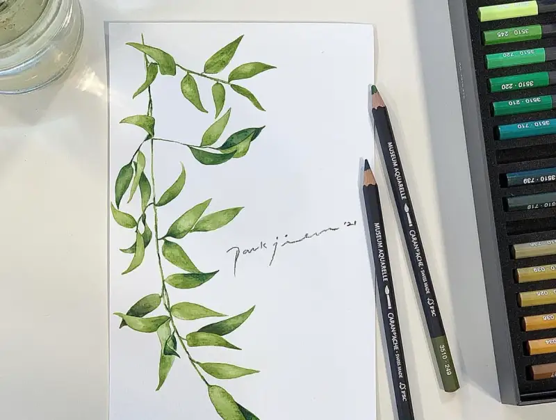 수성색연필은 요철이 있고 도톰한 종이에 그려줬어요