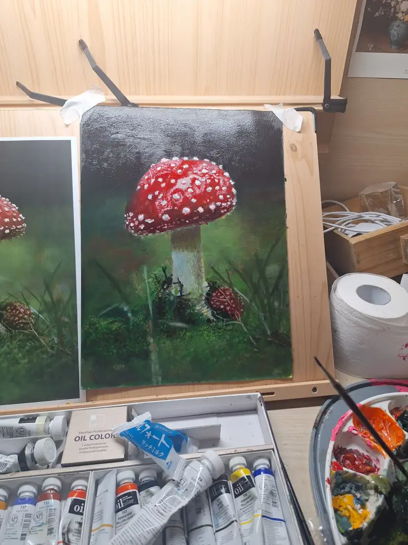 남는시간 꾸역꾸역 그려 완성해낸 버섯..