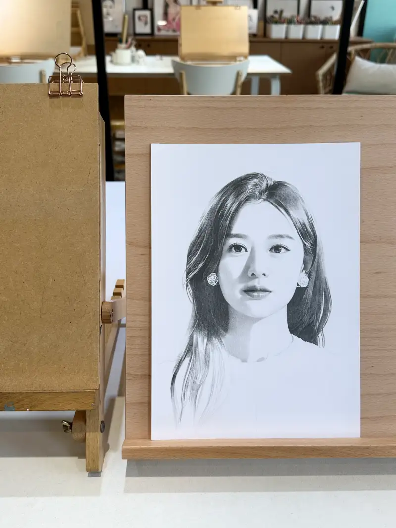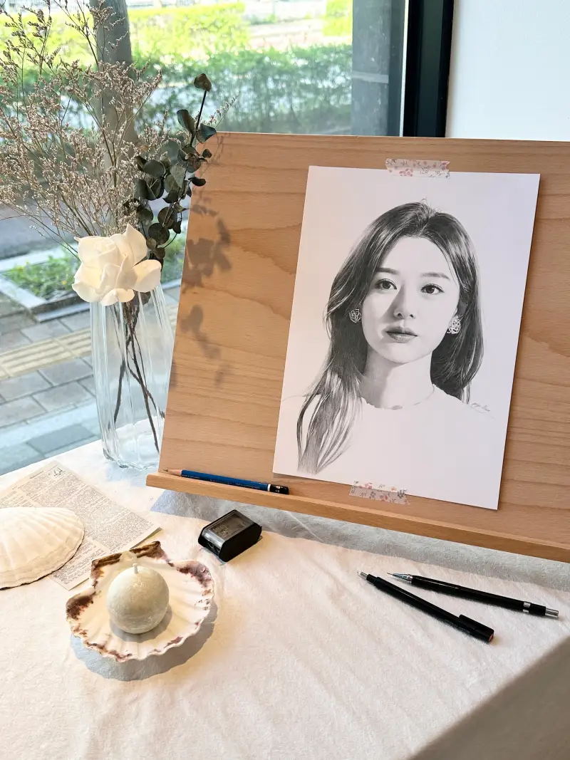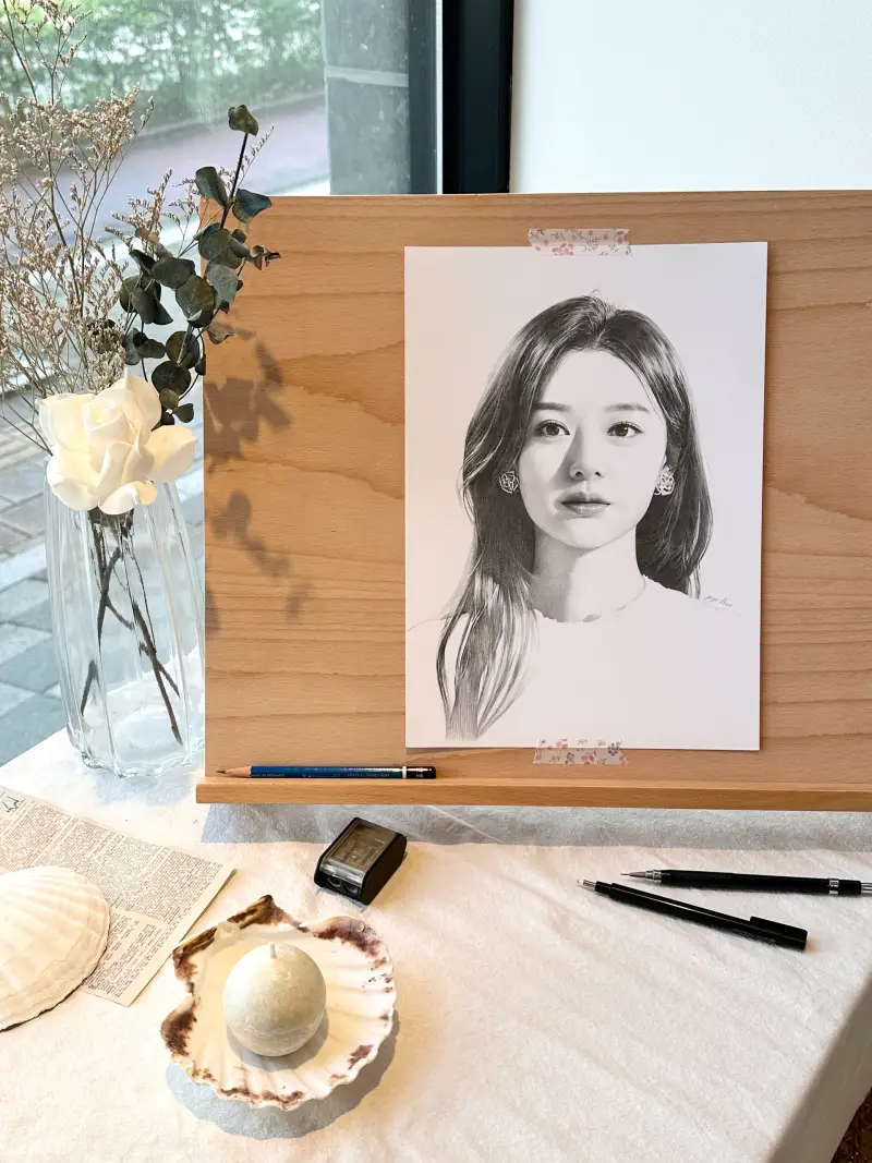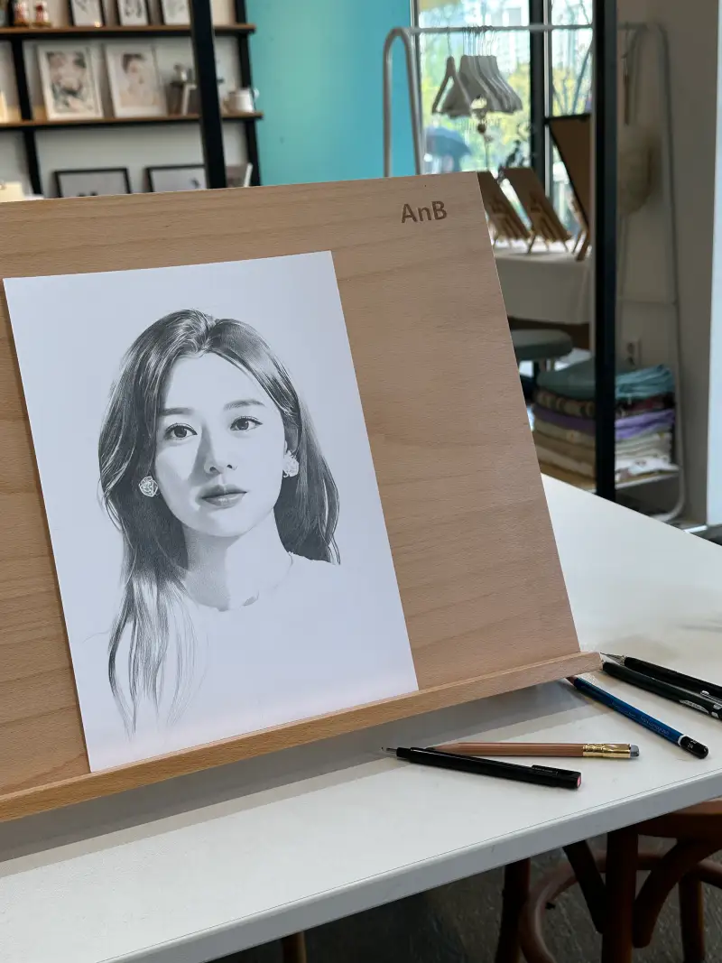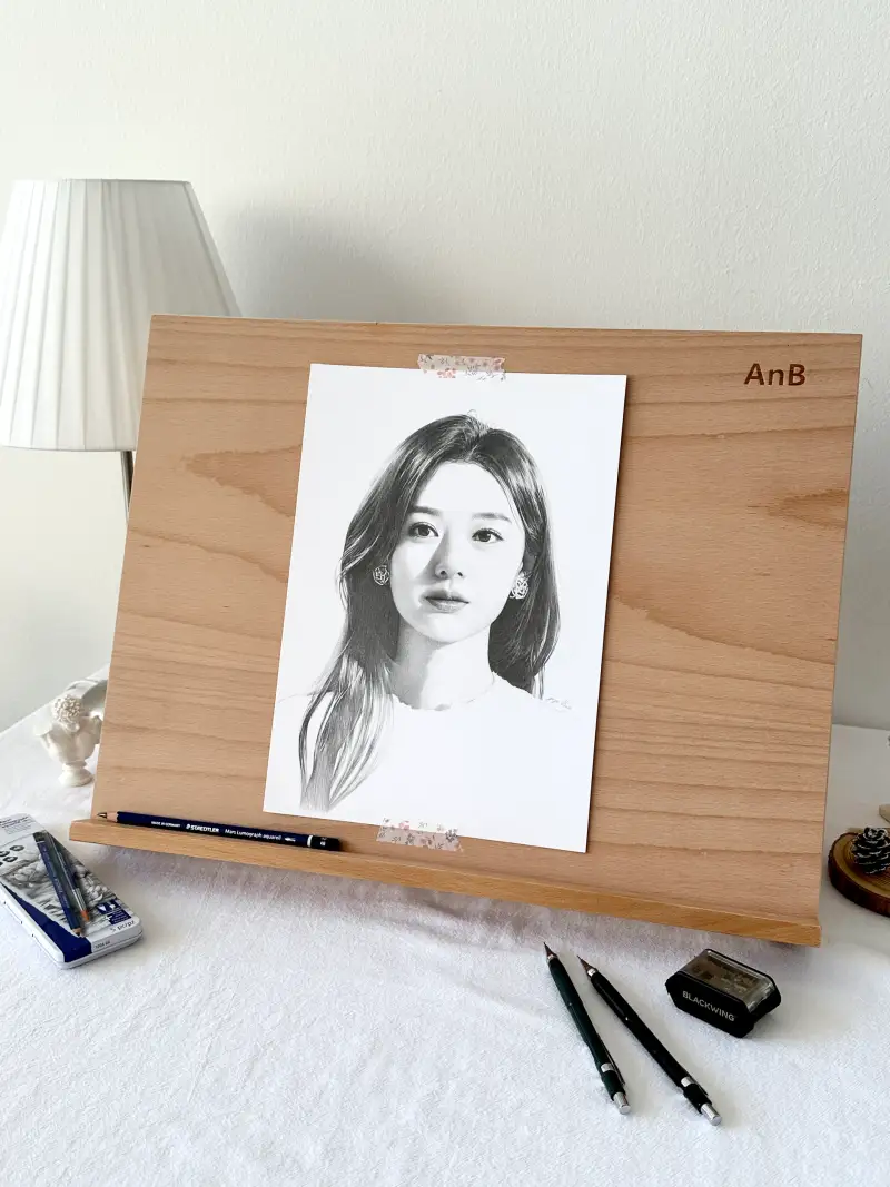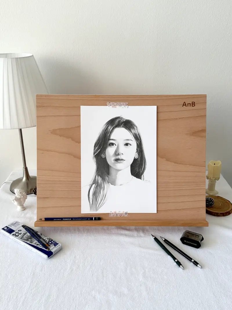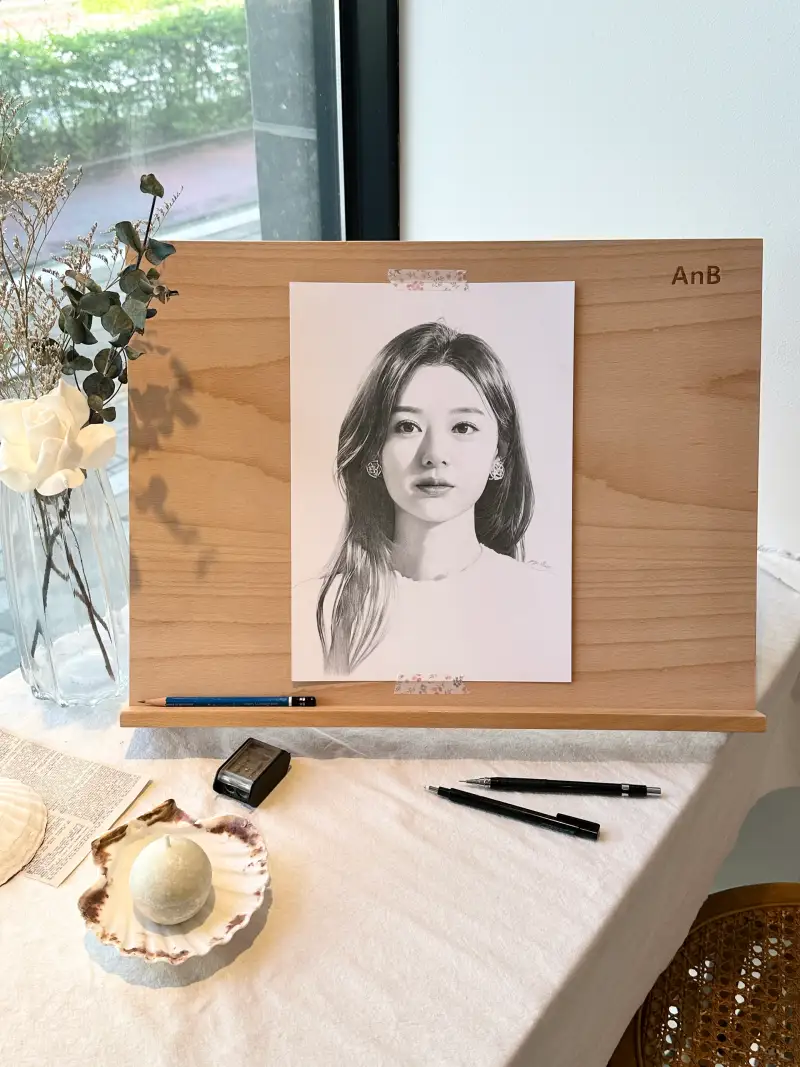 이번에 김지원 그림을 그리면서도 AnB 테이블 이젤 위에 두고 그렸는데 이젤 자체가 고급스럽고 예뻐서 그냥 그림만 올려두어도 작품을 전시한 느낌이 들더라구요 ㅎㅎ 사용하지 않을 때는 화실에 그림을 전시하는 용도로 써도 좋을 것 같아요!💗