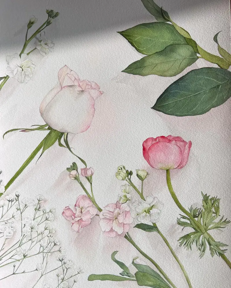 그래서 수채화 물감들 중엔 입자가 굵은 색들이 있고 실제로 헹구는 물컵에 입자들이 가라앉는걸 볼 수 있는데 이번에 채향을 사용하면서 입자가 가라앉는걸 보지 못했어요. 그림 그리면서도 입자가 확실히 고와서 스며듬이 남다르구나..!😮라는 것도 느끼기도 했고요.