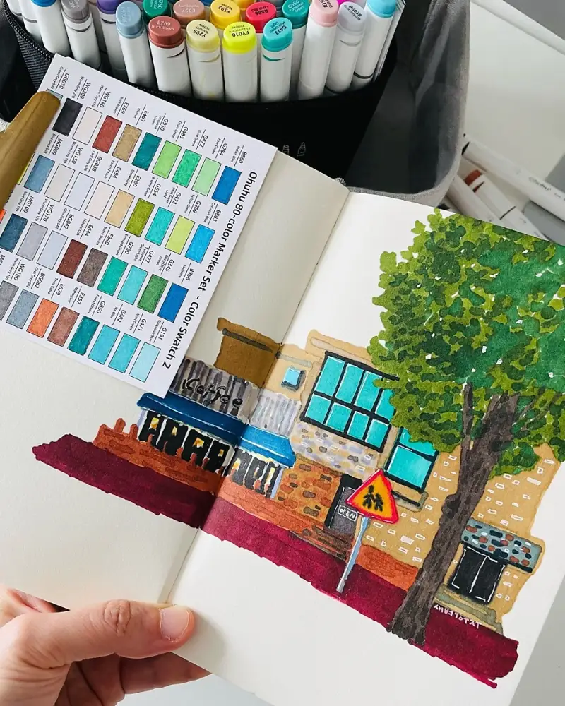 일상드로잉에 최적의 조합(오후후 마카&스케치북)