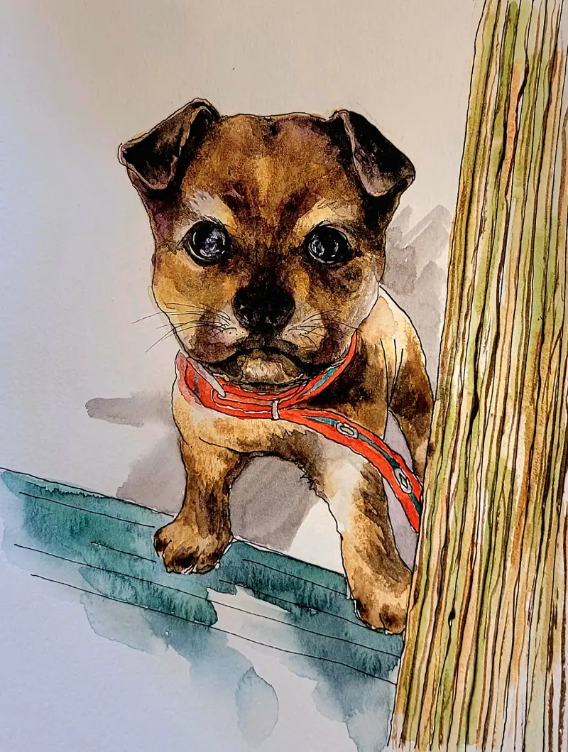 제주도로 떠났던 여름가족여행에서 점식식사를 하러 갔던 식당에서 만난 토토라는 강아지이다. 너무나도 똘똘한 눈빛으로 살갑게 굴던 토토가 그리워서 그림으로 몇장 남겨 보았다.