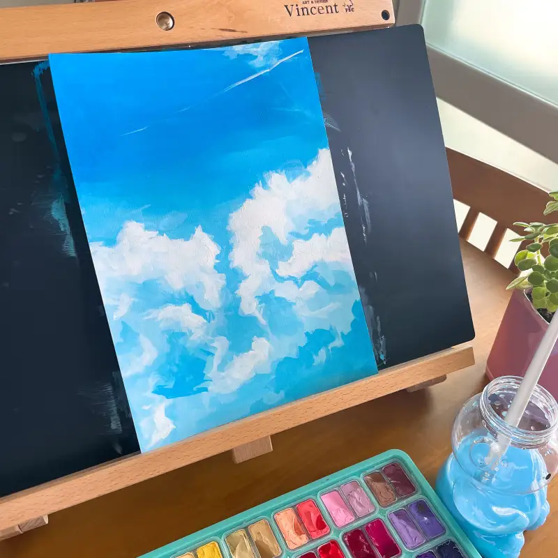 물을 많이 섞으면 수채화처럼 표현할 수 있고, 적게 섞으면 아크릴처럼 꾸덕한 질감을 낼 수 있다. 종이 위에서 마르는 물감을 바라보며, 오랜만에 ‘촉감’을 실감했다. 붓을 통해 손끝으로 전해지는 종이와의 마찰. 그 감각은 디지털 드로잉에서는 느낄 수 없는 것이다.